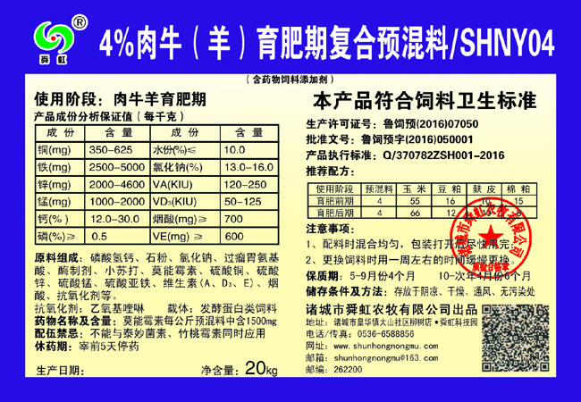 上一條:5%肉牛(羊)育肥期復合預混料-SHNY05